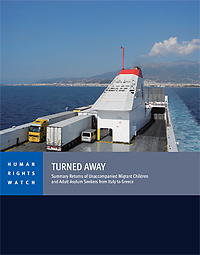 The 45-page report, “Turned Away: Summary Returns of Unaccompanied Migrant Children and Adult Asylum Seekers from Italy to Greece,” documents the failure of Italian border police at the Adriatic ports of Ancona, Bari, Brindisi, and Venice to screen adequately for people in need of protection, in violation of Italy’s legal obligations. Human Rights Watch interviewed 29 children and adults who were summarily returned to Greece from Italian ports, 20 of them in 2012.