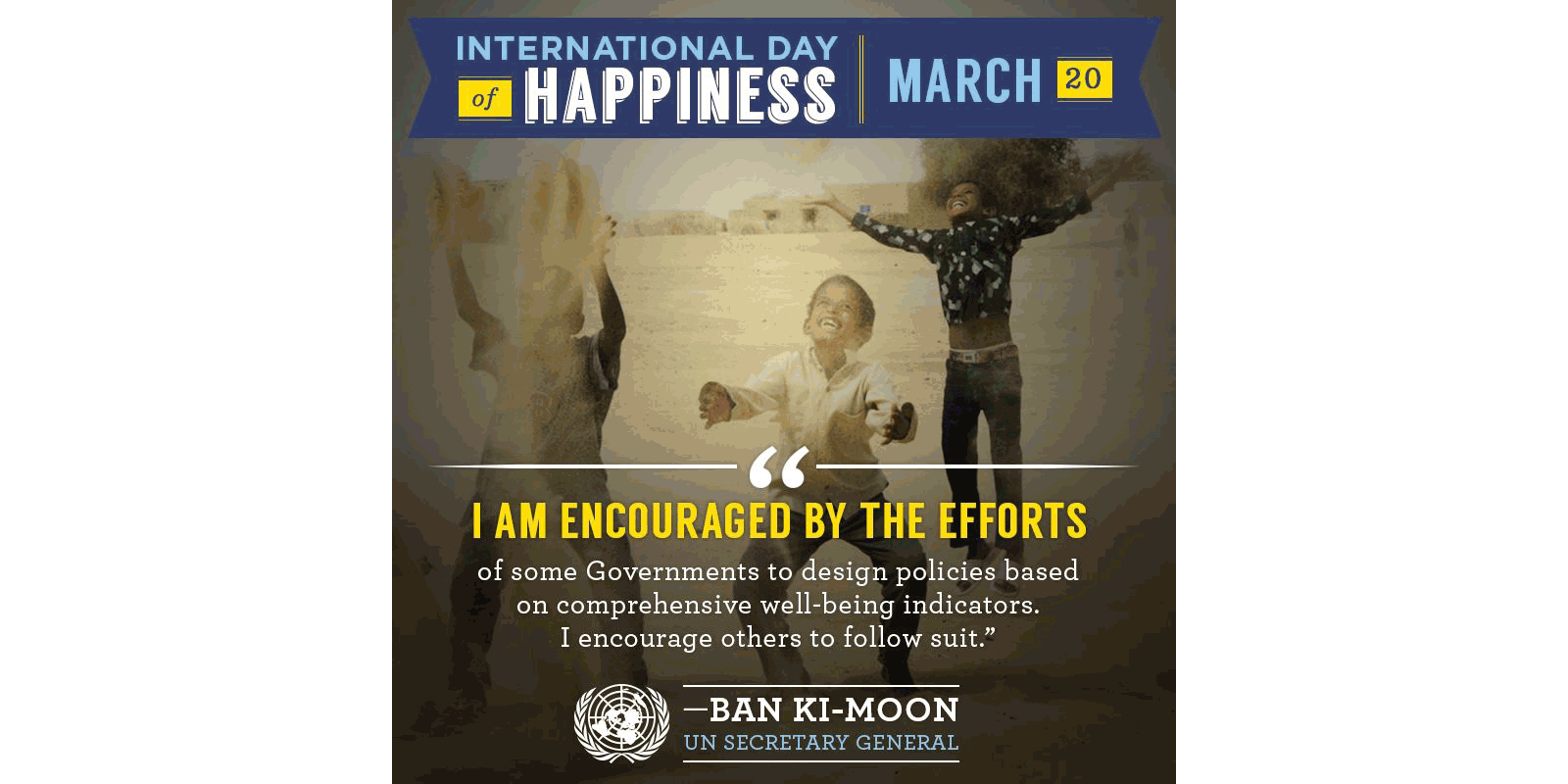 “I am encouraged by the efforts of some Governments to design policies based on comprehensive well-being indicators. I encourage others to follow suit,” Mr. Ban said. “On this first International Day of Happiness, let us reinforce our commitment to inclusive and sustainable human development and renew our pledge to help others.