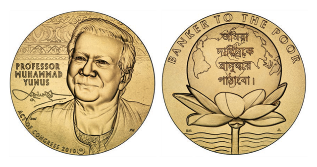 Micro-credit expert Muhammad Yunus has become the seventh person to have received the Nobel Prize, the Presidential Medal of Freedom and the Congressional Gold Medal, said John Boehner, Speaker of the US House of Representatives. Also, Dr Yunus is the first Muslim and the first Bengali to have received all these three awards. He was presented the Congressional Gold Medal 17th April at the Capitol Rotunda.