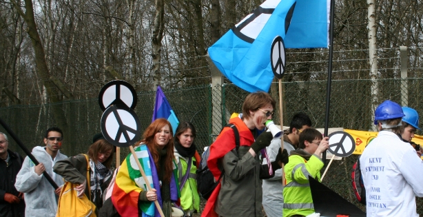 Thousands protested today at the Atomic Weapons Establishment in Aldermaston: calling on the government to scrap the Trident nuclear weapons system and cancel its replacement.