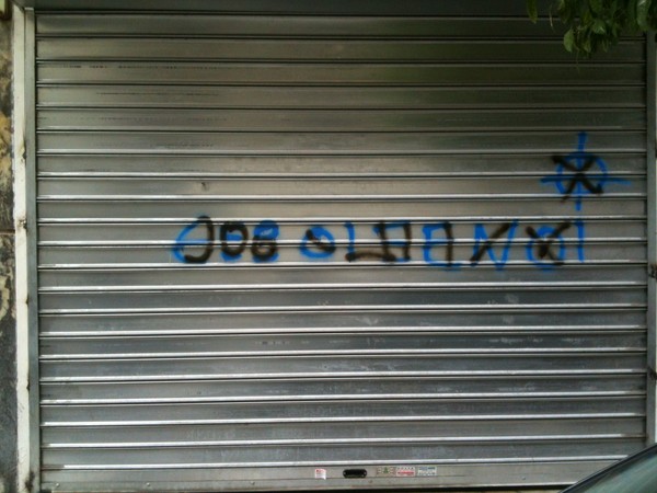 In the picture: graffiti on the exterior of an Afghan-owned bar in the Aghios Panteleimonas neighbourhood in Athens reads “Foreigners Out.”