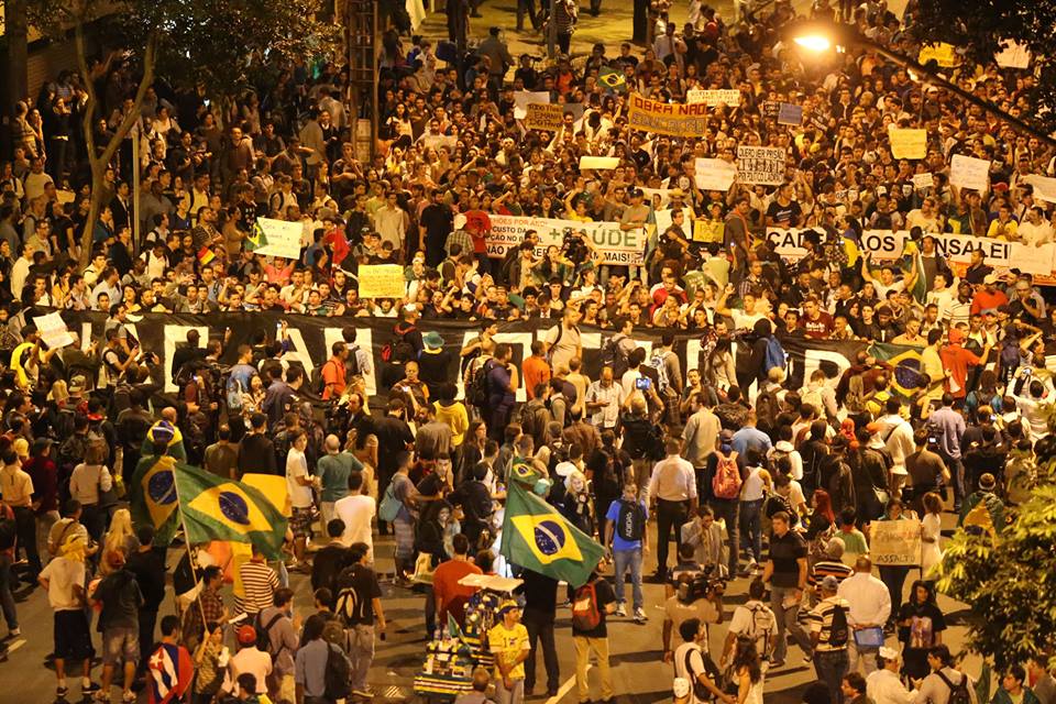 2013 has been a year of growing rise in the cost of living. Even economic policy dropped an increase in interest rates following a doubtful theory to stop inflation that officially hadn’t reached double figures, whereas in the moment of paying for shopping, rent, clothes and everything else, reality was not adapted to the numbers. In this situation, the final straw, the spark that set the protests alight was the increase in the cost of public transport: bus, metro and train fares increased by 20 cents on average. The protests started in several cities, something that was nothing new in itself. Even those who have been militants for many years thought that this was “just another protest” and didn’t think much more of it. But young people have other aspirations. With intense use of social networks and mobile phones they went to the street, not once, but many times. They recorded everything they could in photos and videos. They commented on them and uploaded them to the internet instantaneously.