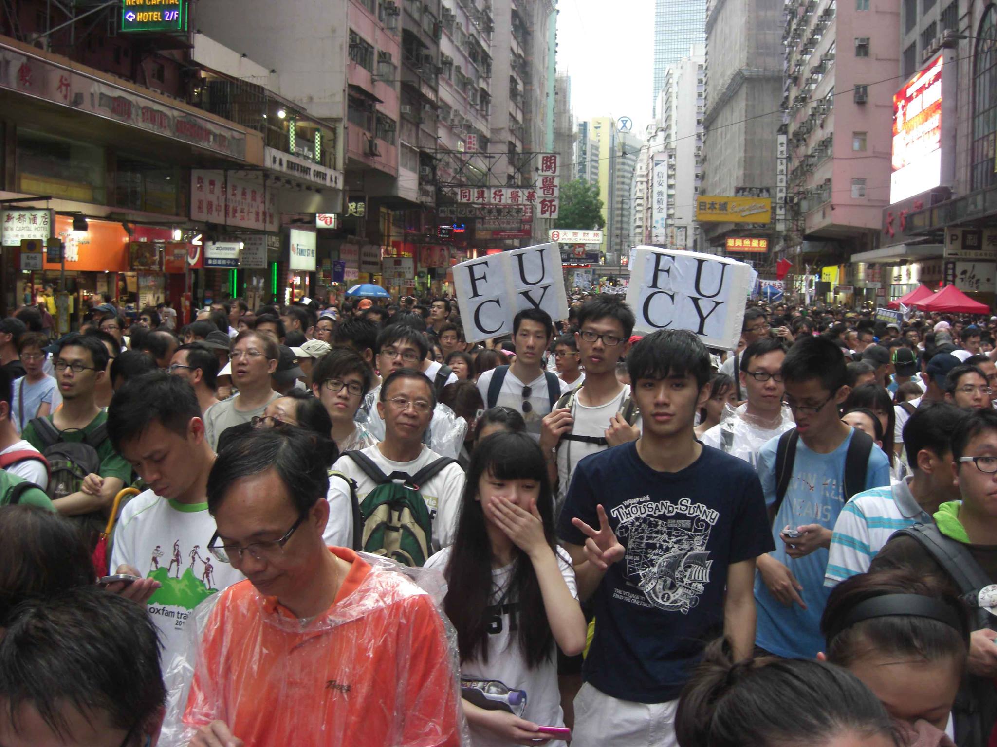 Student unions held press conferences calling for campus autonomy among other concerns and that was amid demands concerning gay rights, all the way across to animal rights. Many people were waving flags that read “Occupy Central” and chanting slogans including “Down with CY” C. Y. Leung, the Chief Executive).