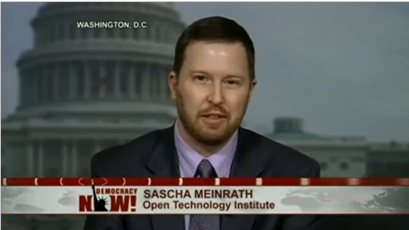 Today, a secret program authorized by a secret court was, when exposed to the light of day, found to violate Americans’ rights. It is the first of many.” We are joined by Sascha Meinrath, director of the New America Foundation’s Open Technology Institute. He served as an expert witnesses on the Review Group on Intelligence and Communications, which was tasked by President Obama to review NSA’s activities.