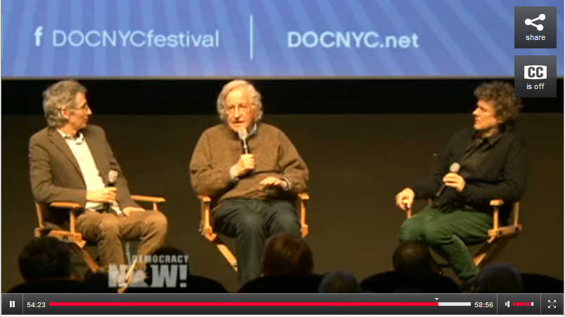 AMY GOODMAN: We turn now to Noam Chomsky. It was the premiere of the film here in New York, and they spoke together at the—after the film showed. This is Noam Chomsky responding to a question about his own education.