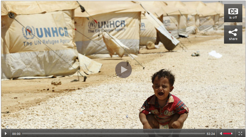 AMY GOODMAN: We turn now to Syria, where the conflict between President Bashar al-Assad and rebels seeking his ouster has just entered its fourth year. The Britain-based Syrian Observatory for Human Rights says more than 146,000 people have been killed since the conflict began March 15, 2011, roughly half of them civilians. The conflict has displaced more than nine million people, with two-and-a-half million refugees living outside Syria and six-and-a-half million displaced within the country.