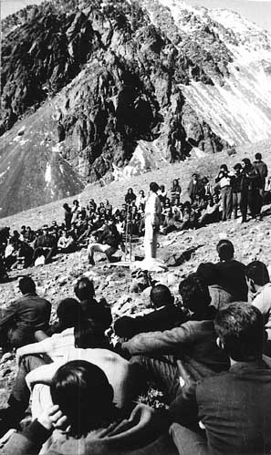 On May 4th 1969 Silo, also known as “The Sage of the Andes”, spoke to a group of about 200 people who had arrived to Punta de Vacas, a remote outpost at the foothills of Mount Aconcagua near the border between Argentina and Chile. He had been forced to speak there by the military government ruling Argentina at the time as he was not allowed to do it in the city. “Go speak to the stones” they said. But people arrived to listen to him in spite of the hurdles and threats imposed by the local armed forces that surrounded the place whilst he spoke.