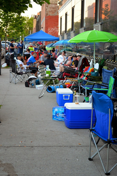 I was on the train on my way home in Sunnyside, Queens, when, just a minute before my stop, I saw canopies and lines of people on the sidewalks. I had my camera with me and the weather was so beautiful, it was like an invitation to walk on the street. My journey was very short, just a few blocks from the station. I started to ask a few of the people lining up if I could take some photos. They were pleased by my asking and took a pause to be remembered. In my mind was the question: why and how are all these people camping on the street? This was not a line for a Justin Bieber concert and we don’t have any special facilities in the neighborhood for large summer festival or other such entertainment.