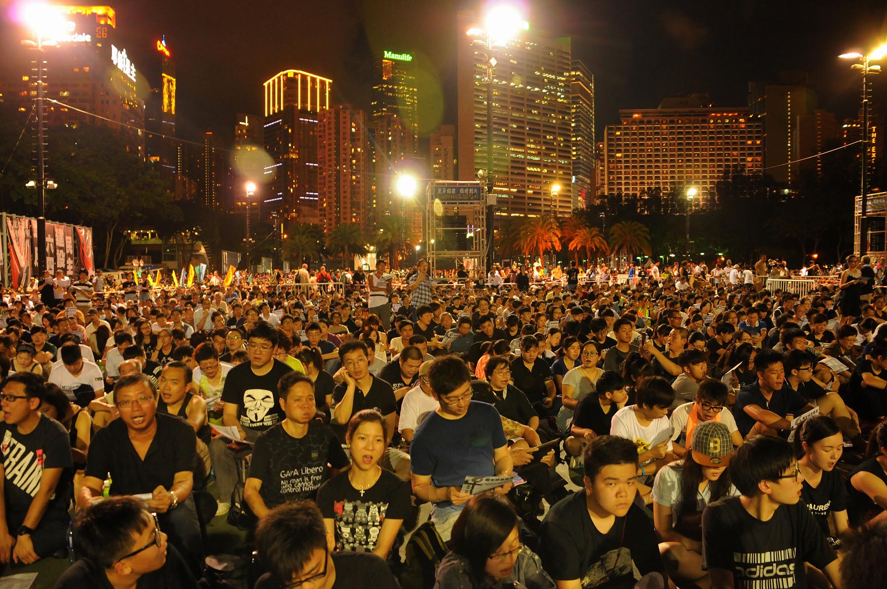 Organisers place the figures at 180,000 and that must be the more accurate figure as those playing down the attendance at such demonstrations have various means of chipping away at the actual by having their own criteria – in this instance those outside the ground not counted by (defensively) pro-Beijing organisations, for instance.