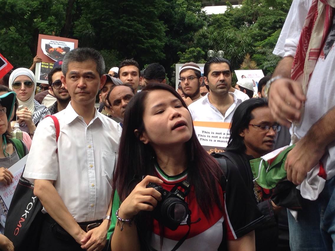 In Hong Kong many hundred of protesters marched the streets against the Israeli attacks on Gaza and official figures of those killed in Palestine rose to over 160 as the march continued. The Israel Consulate was closed as it was Sunday and no official was around to accept the letter of protest.