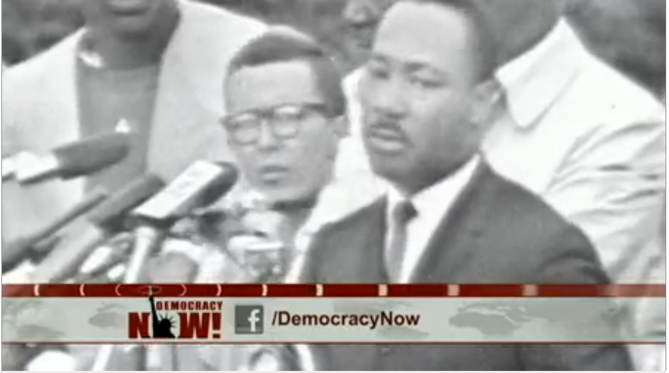 As debate continues over U.S. plans to launch airstrikes in Syria, we look at the final year of King’s life when he became a fierce critic of U.S. foreign policy and the Vietnam War, calling his government “the greatest purveyor of violence in the world today.” We speak to public TV and radio broadcaster Tavis Smiley, author of the new book, “Death of a King: The Real Story of Dr. Martin Luther King Jr.’s Final Year.”