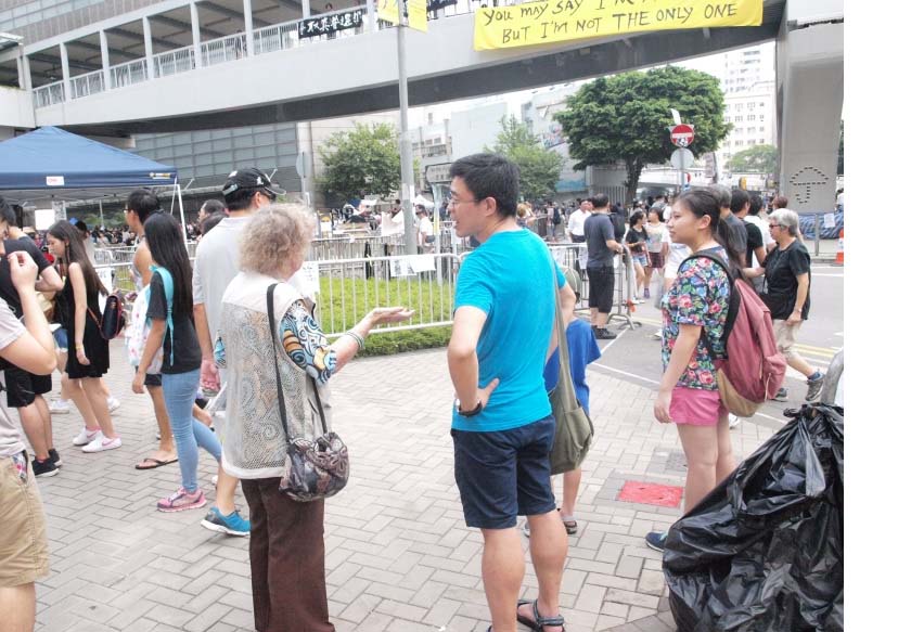 Note 2: Feature photo of the author Vonnie Boston talking to a protester at the Hong Kong movement. The banner on the overhead walkway declares – “I know that I’m a dreamer… but I’m not the only ONE…” and, the man with his son and wife stressed they were so pleased they were making an impact internationally because of their conviction to protest in a non-aggressive manner. He declared that any form of violence is no longer the way forward for human beings.