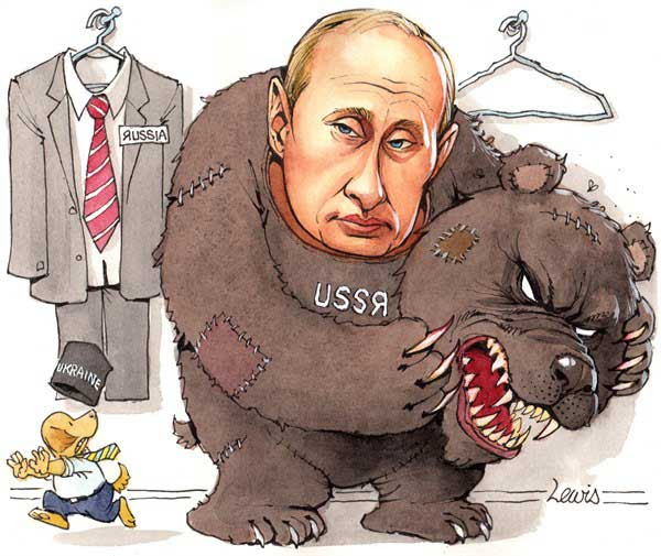 Cartoon by Australian Peter Lewis – “Vlad Putin’ on his bear costume”
