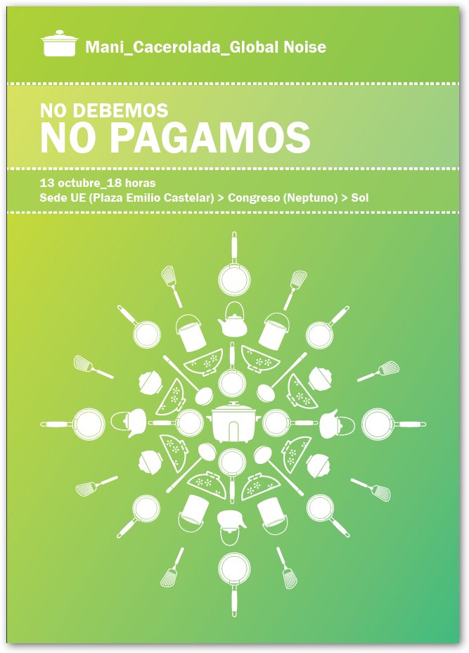El 13 de octubre, bajo el lema “NO debemos, NO pagamos” vamos a unir luchas diciendo NO al pago de una deuda ilegítima, NO a los recortes y privatizaciones, NO a los privilegios en el pago de impuestos, NO a la reforma laboral y el desempleo, NO a la especulación con la vivienda, NO al rescate de la banca, NO a una Unión Europea de los bancos y multinacionales, NO a sus mentiras, NO a un sistema que antepone los intereses particulares de unos pocos a los intereses generales de la ciudadanía…