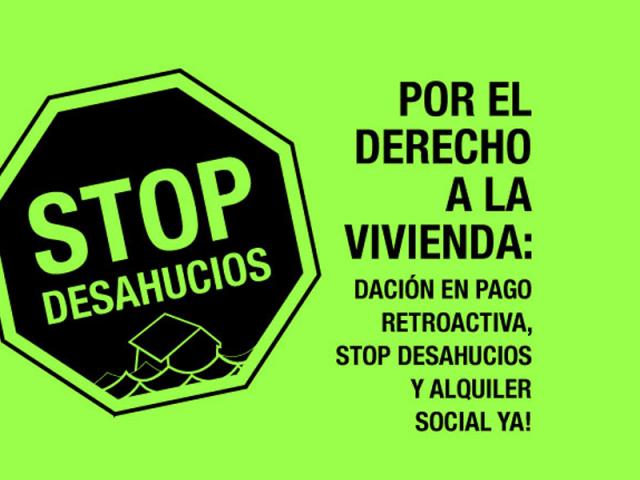 Pedimos el derecho inmediato de viviendas de alquiler social para las familias afectadas por los desahucios. Hemos intentado arrancar al Ayuntamiento un compromiso de implicación activa y firme en el problema de los desahucios, solicitándole que no delegue toda la responsabilidad en la Comunidad de Madrid y el Gobierno Central, tal como así ha resultado tras mociones aprobadas en plenos del ayuntamiento. Concretamente el pleno con fecha del 07/06/12 donde tanto PSOE como IU presentaron una moción conjunta sobre medidas de desahucio y que a fecha de hoy, como ya decimos, seguimos sin ver efectividad alguna a pesar de haber sido aprobada esta moción por mayoría.