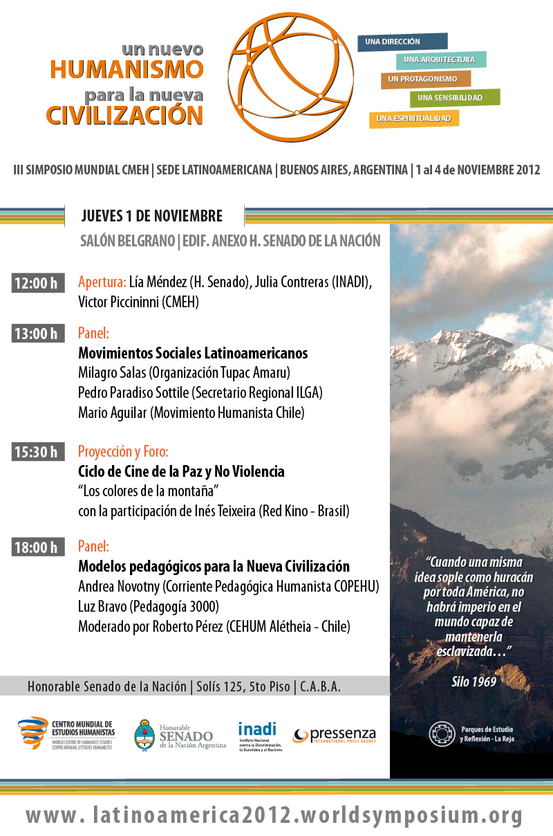 A momentos de comenzar el III Simposio Internacional “Un nuevo Humanismo para la nueva civilización”, ya comienzan a llegar asistentes desde varios paìses suramericanos, se confirma la asistencia de varios de los panelistas invitados mientras otros avisan que han tenido inconvenientes polìticos o personales que les han hecho imposible llegar hasta la ciudad de Buenos Aires que será sede latinoamericana del evento.