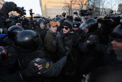 La policía rusa detuvo este sábado a decenas de opositores, incluyendo a Serguei Udaltsov y Alexei Navalny, durante una manifestación, convocada con motivo del primer aniversario del inicio de una inédita movilización contra el presidente Vladimir Putin.