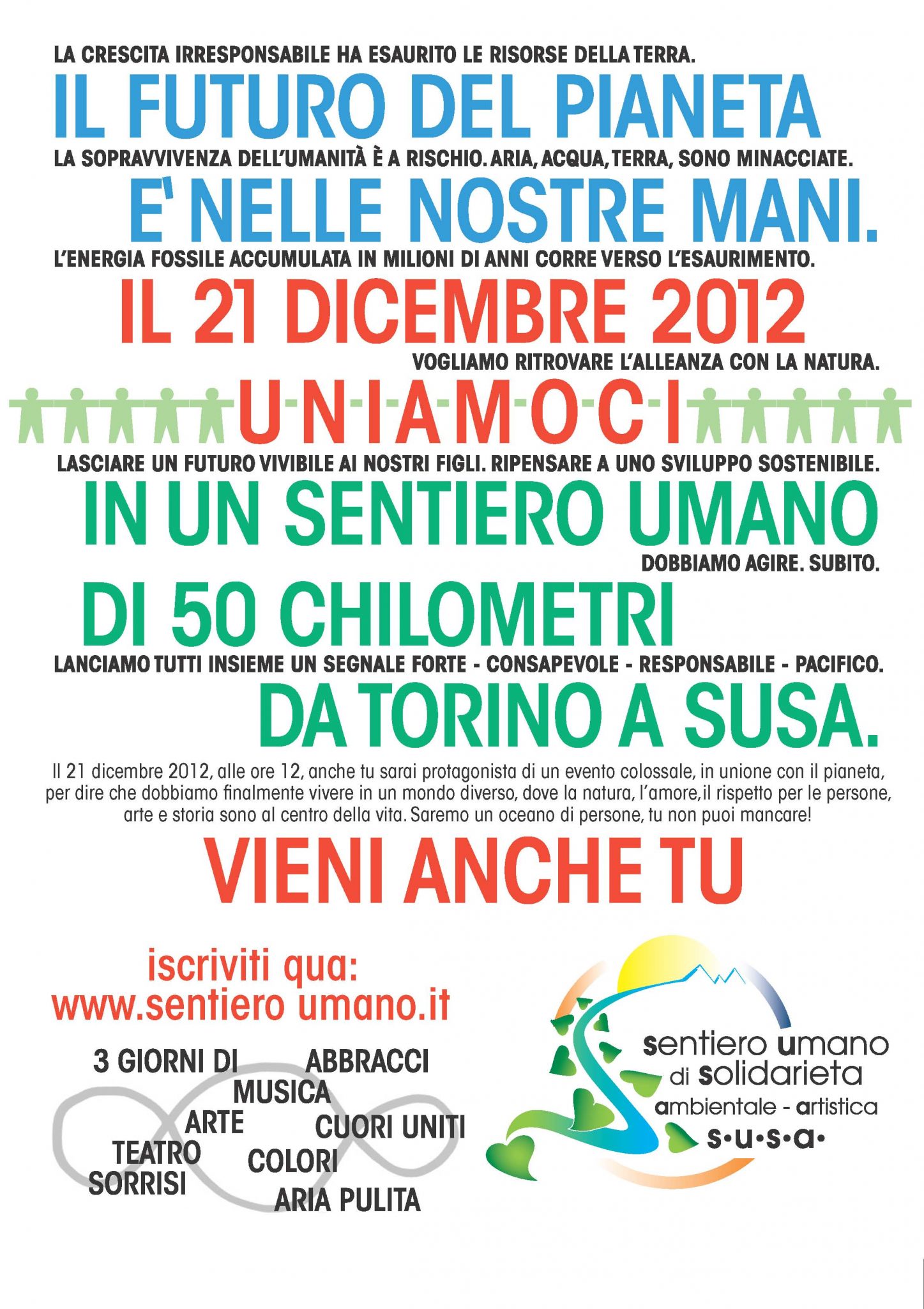 Il 21 dicembre dalle 12,21 alle 12,24 verrà creata una catena di mani che si uniranno distribuendosi per 54 Km dal centro di Torino a Susa.